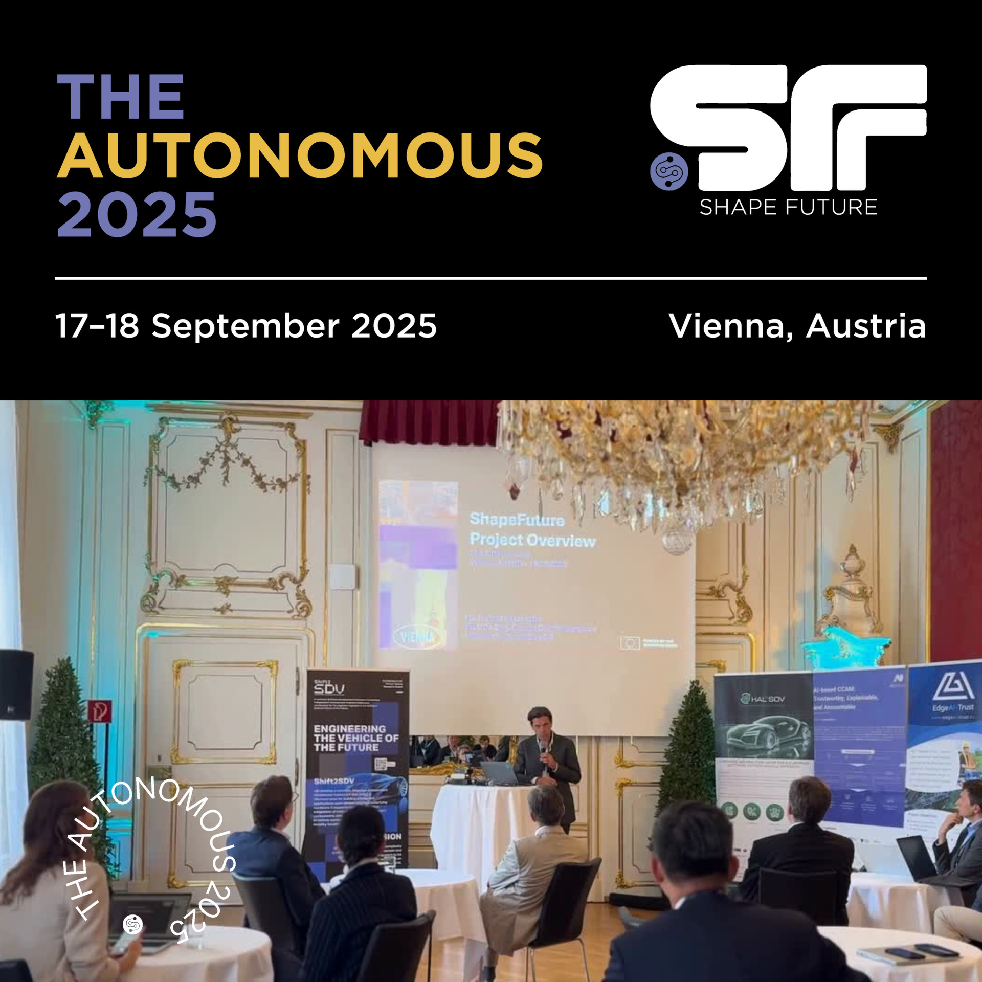 The ShapeFuture project was proudly presented at The Autonomous 2025 in Vienna — a key event bringing together experts, researchers, and industry leaders to discuss the future of safe and trustworthy autonomous systems. Prof.Dr. Eng. George Dimitrakopoulos introduced how advanced architectural concepts developed within ShapeFuture can be translated into deployable, safe, and efficient autonomous systems, reinforcing Europe’s position at the forefront of innovation in the field. The event also offered an excellent opportunity to engage with other EU-funded projects and exchange ideason the evolution of autonomous mobility. Notable initiatives represented included HAL4SDV, AIthena, EdgeAI-Trust, NEMO, ARCHIMEDES, A-IQ Ready, AI4CSM, and AutoDevSafeOps. ShapeFuture’s participation in The Autonomous 2025 underlines the project’s commitment to fostering collaboration and innovation towards the next generation of safe, intelligent, and connected autonomous systems.